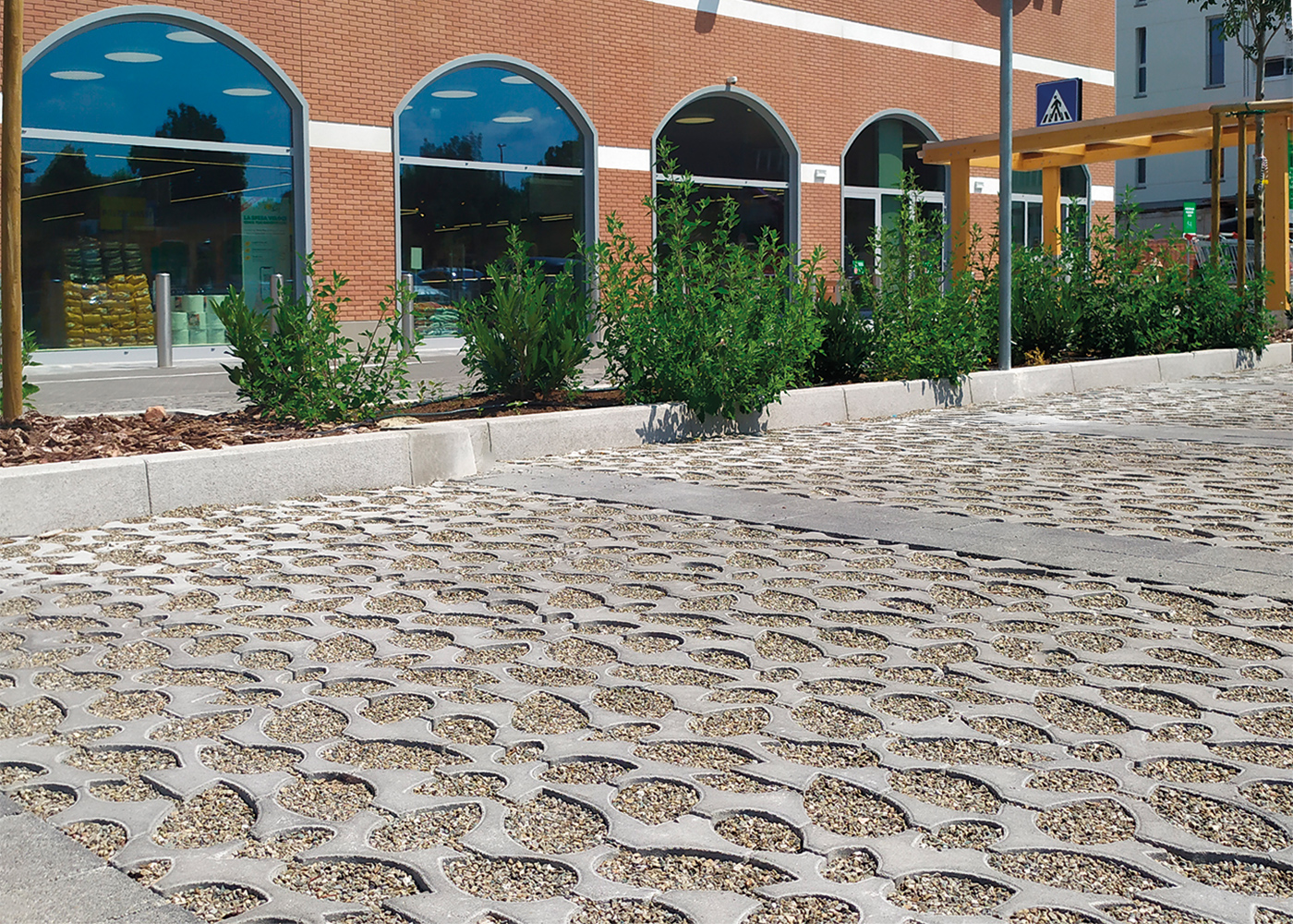 Blocchi modulari forati per pavimentazioni destinate ad aree di parcheggio, parchi e spazi esterni
